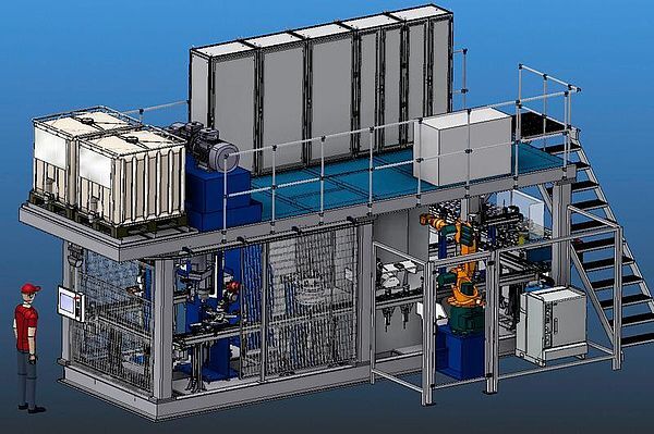 In dieser Anlage werden Lager befüllt und fertig montiert. Zum Montageprozess in dieser Anlage zählen auch eine Kalibrierung im Durchmesser und in der Länge, deren Vermessung, sowie eine Prüfung der Dämpfungseigenschaften.